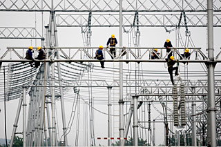 | 安徽省電力公司加快在建發電廠送出項目的建設速度,力爭早日并網發電,以緩解今夏華東電網用電缺口。圖為安徽省電力公司員工在淮北500千伏濉溪變電站進行接火作業。新華社發(王文