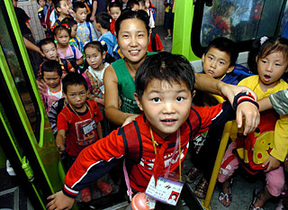| 為緩解“用工荒”,晉江市開辦了外來工子弟學校,學校還為離校較遠的學生配備了接送專車。新華社記者 張國俊