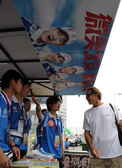 “小伙子,去朝陽附近的燕莎怎么走?”9日上午8點半左右,在阜成門地鐵站,一對來北京旅游的老年夫妻有些茫然地向兩位年輕的志愿者問道。 正忙著搭建服務臺的兩名小伙子聞聲立刻停住手中的活兒,一位稍高的男生微笑著回答道:“你們先坐一站到復興門轉一號線,再坐到國貿轉十號線,往北坐到亮馬橋站就到燕莎了!”正當兩位老人道謝時,另一位志愿者又補充道,“十號線列車內的空調溫度在16到20攝氏度,請您注意保暖!”兩位老人點頭含笑地離開。 記者采訪后了解到,這兩位志愿者都是北方交通大學計算機系大二的學生,稍高那位是北京人,另一位則家在山西,工作范圍就是地鐵阜成門站。在他倆剛剛搭好的服務臺上,記者發現除了有一疊北京交通地圖、奧運健康手冊等,還有五張手寫的極其工整的附近公交站臺換乘信息,“這里有前幾任地鐵志愿者留下來的,也有我們在接受問詢過程中逐漸補充的,為的是能給前來咨詢的人們提供更為準確的服務!睋轿餍』镒咏榻B,像他們這種地鐵志愿者一般每天有兩班,一班從上午9點到下午2點,另一班則從下午2點到晚上7點!9號是我們在阜成門站服務的最后一天、最后一班崗,之后我們將繼續進行其他志愿工作! 就在與記者交流的不到半個小時時間里,先后有數十位民眾前來尋求各種信息服務!拔覀兠咳嗣堪啻蠹s能為200位民眾解疑釋惑,大部分是外地人,也有外國朋友前來咨詢!北本┠泻τ浾哒f,為了能夠準確回答這些外國友人的疑問,培訓的時候著實刻苦練習了不少英語口語呢,“比當年考四級還要認真!”但結果大部分來問路的外國朋友都會不少漢語,英語并沒有在指路上發揮太大的作用。反而是在檢票或安檢時,地鐵工作人員常常會找他們幫忙與老外溝通,“但不管怎么說,練習口語還真是派上了不少用場,無論是指路還是其他工作,我們都是在為北京奧運作出自己的一點點貢獻!我們能夠參與到其中,感覺非常幸運和光榮!” 為了不影響他們的工作,記者準備在詢問其姓名后離開,但兩位可愛的男孩吐了吐舌頭,靦腆地笑了,“我們很普通啊,我們的名字就叫志愿者!”說完,他們就再次投入了緊張的工作當中。