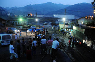 9月5日凌晨2時52分,四川省興文縣金河煤礦發生煤與瓦斯突出事故,在當班入井的44人中,死亡12人,失蹤6人,安全出井26人。等待消息的家屬和群眾在金河煤礦井口。新華社記者:陳燮