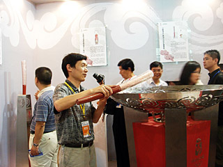 | 第五屆專博會上,參展觀眾對華帝公司展出的奧運祥云火炬、圣火盆產生了濃厚興趣。本報記者 肖思思