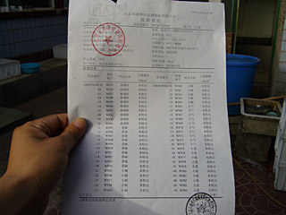 北京市通州區疾病預防控制中心為康潔餐具配送中心出具的檢驗報告。本報記者 呂福明