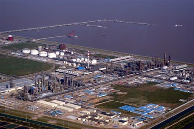 | 上;瘜W工業區鳥瞰 | “對不起,雖然項目很大,但是不能入園。首先不符合我們園區產業鏈發展,更重要的是這個項目沒有達到我們的環保指標!苯K揚州化工園區管委會主任周正權婉言謝絕了一個化工項目的入園申請,而這個項目的年產值達數十億元。 這樣的拒絕在長江三角洲地區的大型園區里十分常見。記者在采訪中了解到,盡管目前國際經濟環境持續惡化,但在嚴格的審批制度和環保、安全標準下,長三角的化工園區憑借企業關聯度高、產品服務一體化等優勢,已經成為我國優勢化工企業聚集地,集群化發展也成為長江三角洲地區發展化工經濟一大特色。