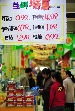 10月CPI漲幅回落0.6個百分點。這是今年5月以來,中國CPI同比漲幅連續第六個月回落。其中食品價格環比下降0.9%。11月11日,市民在安徽滁州一家超市內購物。新華社記者