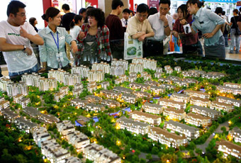 | 2006年,北京市民在第22屆房交會上觀看樓盤模型。 |