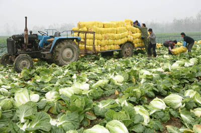 日前,由于受加工企業出口減少等因素影響,安徽蒙城馬店村大白菜一度陷入銷售困境。新華社發(胡衛國