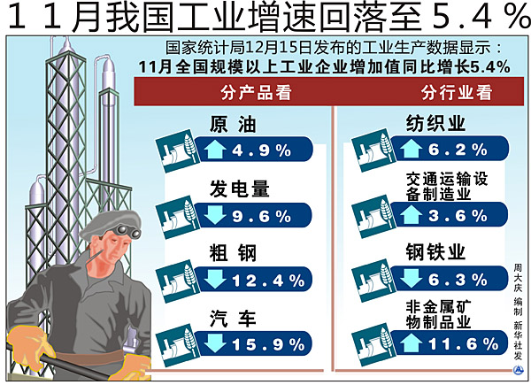 11月我國工業增速回落至5.4%