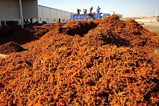 鄂爾多斯是我國重要的沙棘產地。近年來,鄂爾多斯市引進幾家大型沙棘加工企業,項目區內農民每年從沙棘種植、管護、摘果等上面人均增加收入近千元。 圖為農民正在東勝區一家沙棘生產企業交售沙棘果。新華社記者
