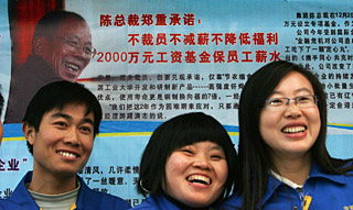 與一些企業選擇裁員不同的是,國內一些地區的企業紛紛表示不裁員、不減薪。 山西的美錦、安泰、海鑫等大型民企雖然遭受了前所未有的沖擊,但還是在2008年11月份共同商討采取不裁減工人的一致行動;2008年12月20日,來自全國22省市晉商會的上萬家企業,在天津發表倡議書,表示面對金融危機,不裁員或者減少裁員;上海200余家企業的董事長、總經理近日也聯名作出不裁員、不減薪的承諾,并倡議更多企業“勇擔社會責任”…… 企業的行為,得到了社會公眾和輿論的積極評價。有媒體發表評論稱,企業困難不裁員讓人們在經濟的寒冬里感受到了絲絲溫暖。 實際上,企業困難面前不裁員,不僅表現出他們強烈的社會責任意識,對企業本身而言也有很大促進作用。 位于山西省清徐縣的大型煤焦企業美錦集團有職工一萬多人,在危機面前,率先倡議不裁員。美錦集團煤炭氣化股份有限公司副總經理趙志國說:“集團不裁員,從眼前看,老板是吃了點虧,但從長遠看是占便宜的。一方面,我們可以留住很多技術力量,一旦將來形勢好轉,企業馬上就能組織力量恢復生產;二是可以承擔更多的社會責任! 美錦集團煤炭氣化股份有限公司煉焦車間工人左俊剛說:“在困難的時候,企業如果裁員,我們工人也能理解。但現在老板沒裁一個人,我們很高興。就算少拿一點錢,也要與企業共度難關! 王云珠研究員說,企業在困難面前選擇不裁員至少有兩方面的積極意義:一是契合當前實踐科學發展觀、構建和諧社會的精神,對樹立企業正面社會形象十分有利,同時可以借此與社會和員工建立和諧的關系,有利于和諧企業文化的形成;二是可以穩定企業的技術和管理人才,有利于企業以后的發展,獲得長遠利益。