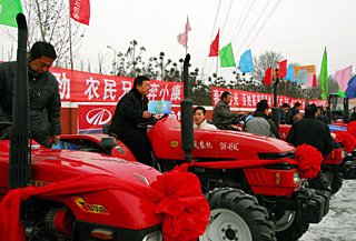 | 1月20日,長春市二道區農民組團來到長吉高速北線的汽車農機工程機械大市場采購農機具,為今年的春耕備耕做準備。時下,國家為拉動內需出臺的一系列優農惠農的政策,增強了農民們購買農機具的信心。新華社記者