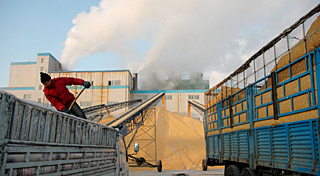 | 2009年1月5日,中糧生化能源(榆樹)有限公司年產淀粉40萬噸,由于淀粉市場價格下降、玉米原料價格上升已經把企業逼到了崩潰邊緣。新華社記者