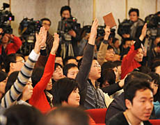 李肇星像個指揮家,從走進水泄不通的十一屆全國人大二次會議新聞發布會現場,這位發言人的一舉一動都會引來“咔咔咔”一連串的快門聲。這位中國前外長妙語連珠,不時引起現場陣陣笑聲。原定一個小時的新聞發布會被一再延長,最后用了將近兩個小時。 艷麗的服飾、彩色筆記本、加長話筒和揮舞的報紙都成為記者們爭取提問機會的“工具”!澳膲夭婚_提哪壺”、“患難見真情”、“君子愛財、取之有道”……李肇星這些生動語言給在場的記者留下了深刻印象。 “我是邊干邊學!崩钫匦瞧届o地看待自己從外交部長到全國人大外事委員會主任委員角色的轉變,“人的職務總是會有變化的,對我來說不變的是,我是祖國的兒子、人民的服務員、朋友的朋友、知識面前的小學生!彼f。 確實,在整場發布會中,他還像是以前的那位敏銳犀利的外長,但是又似乎不止如此,還像一個友善的朋友、一個勤奮的學生。 在一張一弛中,會場的氣氛變得既緊張認真,又輕松活躍。鳳凰衛視一位短發美女記者站起身來,提出了節約辦會、會期縮短原因和地方為兩會代表發放補貼等一連串問題,李肇星聽完后側過頭去和坐在他右邊的新聞發布會主持人李連寧低聲交流了一下,兩人都笑了起來,他隨即正色道:“人大工作的特點是嚴格按照法律和法律程序辦事,剛才主持人已經宣布,每位記者只提一個問題,可是您一共提了3個!痹趫龅挠浾哳D時感受到這位前外長的鋒芒,但是,話鋒一轉,他又說,“在下不為例的前提下,我愿意回答你所有的問題!睅е鴿庵厣綎|口音的李肇星完全掌握了節奏。 他在新崗位上的學習成績看起來很不錯;卮鸸澕s辦兩會的問題時,他舉起了一個紅色的小本本告訴記者,《中華人民共和國憲法》中有“反對浪費”的規定,國宴都改革為三菜一湯,不上白酒了。后來,他又一次舉起了這本《中華人民共和國憲法》,托著腮說,“這一年多來,我學得最多的就是憲法!薄斑沁沁恰薄质且贿B串快門聲。 一位地方報紙的記者好不容易被點名,拿到話筒后顯得非常緊張,至少過了五秒鐘才意識到自己把話筒拿倒了,這把在場的記者都逗樂了,他的臉也漲得通紅。李肇星笑著對他說:“不要緊張嘛!”在新聞發布會結束時,李肇星還不忘對身邊的翻譯孫寧表示感謝,主席臺上并沒有這位年輕小伙子的名字,沖著這份尊重,現場的記者給了李肇星一陣熱烈的掌聲。