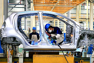 | 2月23日,吉利汽車集團員工在車體總成組焊線上進行焊接操作。新華社資料照片 | 兩會前夕,十大產業調整和振興規劃悉數出爐。 這十大產業振興規劃火線出爐的背后,凸顯出我國應對國際金融危機、保持經濟持續增長的決心。