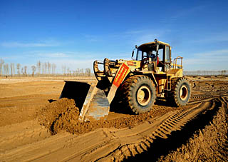 | 據國土資源部發布的最新數據,在跨入2009年那一刻,全國耕地面積為18.2574億畝。圖為內蒙古臨河區烏蘭圖克鎮隆強村8組,工程機械正在作業,改良耕地。本報記者