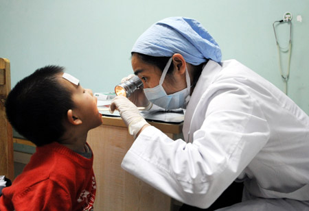 4月2日,廣州市兒童醫院的一位醫生在為一名疑似手足口病患兒檢查。 根據廣東省衛生廳提供的數字,截至3月26日,廣東省共報告手足口病臨床及實驗室診斷病例3245例,大部分為輕型病例,其中重癥病例三例,無死亡病例。 廣東省衛生廳表示,目前,廣東省手足口病正處于高發季節,今后一段時間報告病例數將會呈增加趨勢,預計將在5月至7月份達到高峰。對此,專家提醒公眾,手足口病是可防可控的,要積極防治,平時注意衛生,注意嬰幼兒的營養、休息。