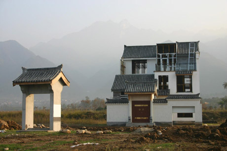 2006年6月,陜西省政府責成西安市和戶縣政府有關部門嚴格監管,防止項目用地改變用途。但當年9月,開發商就在規劃項目區建成一座獨門獨院別墅樣板房進行促銷。這是當時用于促銷的樣板房(2006年10月攝)。新華社記者:張軍 攝 |