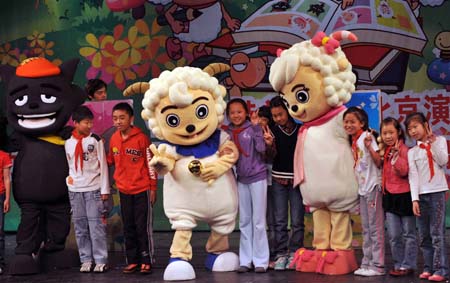 以風靡全國的動畫片《喜羊羊與灰太狼》為基礎創作的動漫人偶劇《喜羊羊與灰太狼之記憶大盜》日前在中國木偶劇院演出12場,深受觀眾歡迎。本報記者:孔卉