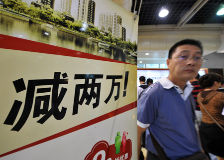 樓市回暖帶來的漲價潮嚇退了不少購房者。而在日前舉辦的杭州第九屆人居展上,一家樓盤適時打出打折廣告招攬生意。新華社記者:王定昶