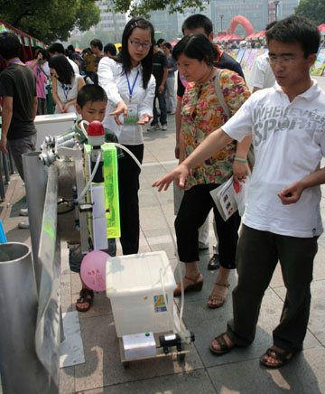 浙江民間資本實力雄厚,創業氛圍濃郁,有望成為天使投資的一片熱土。 圖為不久前舉行的2009年浙江省暨杭州市科技(科普)活動周上,浙江大學學生向參觀者介紹由他們發明的“高速公路護欄清洗裝置”。 新華社發(周學軍攝)