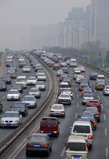 從4月11日起,北京開始推行“每周少開一天車”新限行措施,交通擁堵改善明顯,空氣質量整體呈好轉趨勢,每日機動車污染物排放量減少375噸。(資料照片) |