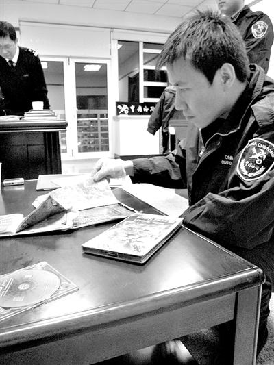 2009年6月2日,大連海關成功破獲一起利用CD碟片藏匿毒品,通過國際郵遞渠道交貨走私海洛因的案件。這份快件三本碟片包裝精美,尺寸適當,且沒有拆封痕跡。當緊裹在CD碟外盒的紙制外包裝被緝私警察切開后,幾個被壓得薄薄的藍色塑料袋赫然顯現,大量白色粉末均勻地鋪在袋子里。經檢驗,白色粉末為毒品海洛因,共計247.37克。(孫耘)