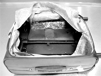 今年6月6日中午11點40分許,從胡志明市飛來深圳寶安機場的ZH9872航班抵達,在對一名越南籍中年男性旅客的行李箱進行破壞性檢查后,海關關員發現行李箱夾層內有一“方形”扁平物體,是一塊用銀色錫紙包裝的可疑物品,錫紙外面沾滿了辣椒粉!錫紙內包裝的物品為散發出醋酸味的粉末,經鑒定,可疑粉末為高純度海洛因,共計906克。