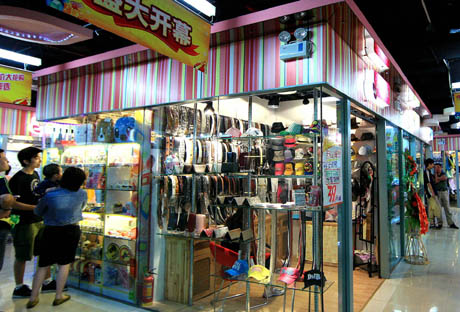 上海市普陀區近日剛開業的一家服飾品專賣商廈一景(7月4日攝)。 記者從上海市商務委員會獲悉,2009年上半年,上海社會消費品零售總額預計可達2505億元人民幣,比去年同期增長13.7%,消費已成拉動全市經濟增長的重要力量。