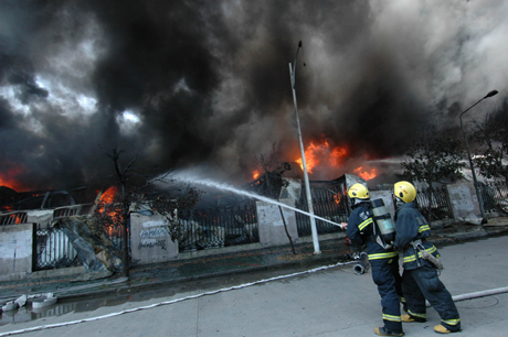 7月19日,在溫州市一制筆廠倉庫火災現場,消防官兵全力滅火。當日,浙江省溫州市一制筆廠倉庫發生火災。截至記者發稿時,當地消防等部門還在火災現場進行撲救,人員傷亡及起火原因等有關情況正在調查中。