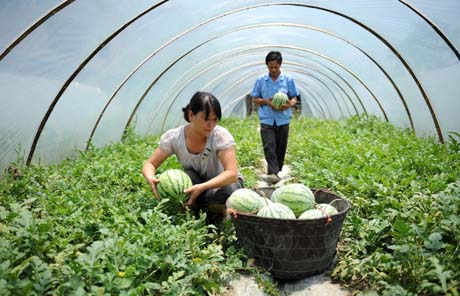 日前,江西省上猶縣梅水鄉的2000多畝麒麟瓜獲得豐收。近年來,江西省上猶縣梅水鄉適時調整農作物布局,改變以往單一種植水稻作物的做法,發展西瓜、草莓等特色農業,使當地農民收入不斷增加。圖為江西省上猶縣梅水鄉水陂村村民在采摘麒麟瓜。