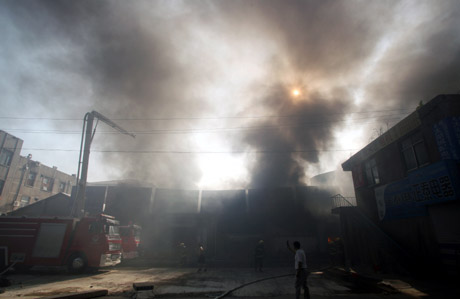 8月13日,位于濟南市北園大街東段的一個五交化倉庫起火,冒出滾滾濃煙。接到報警后,當地消防部門出動官兵趕往現場實施滅火。經過2個多小時的努力,火勢得到控制,所幸大火沒有造成人員傷亡。目前起火原因正在調查中。新華社發