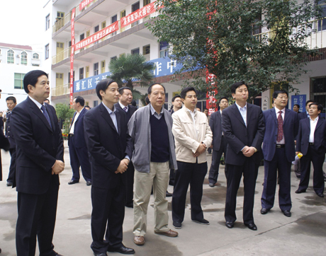 漯河市委書記靳克文(左一)陪同中央綜治委領導檢查驗收綜治工作。 |