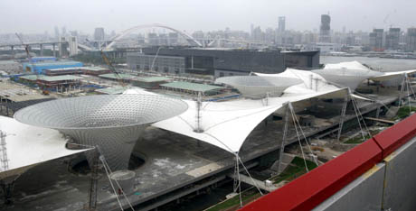 8月30日,上海世博園區世博軸膜結構工程全面完成。世博軸工程采用全新建筑形式,其屋頂設計為長約840米、寬約97米的巨型索膜結構,形如藍天下的朵朵白云,并在整個索膜覆蓋的結構中設置了六個巨型圓錐狀鋼結構“陽光谷”,讓自然光透過“陽光谷”傾瀉而下,滿足部分地下空間的采光,體現環保和節約的理念。據介紹,世博軸索膜結構厚度僅為一毫米,使用壽命可達30年。