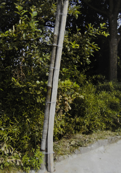 重慶市江津區李市鎮的一處簡陋陳舊的農村電線桿,是用木棒捆綁而成,安全隱患嚴重。 |