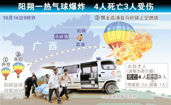 據廣西壯族自治區安監局介紹,發生事故的熱氣球歸屬東莞市美翔航空俱樂部有限公司。記者致電民航中南管理局了解到,該公司于2008年9月獲得民航管理局頒發《通用航空經營許可證》并在工商部門注冊,是國內較早獲得上述許可的公司,具備熱氣球經營活動的相關資質。 |