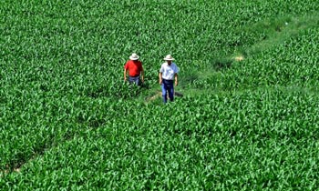 技術人員查看張掖市甘州區制種玉米的生長情況。本報記者 韓傳號