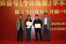 剛才四位專家學者從不同的角度,探討了《今日觀察》產生的時代背景,以及目前所取得的成就,未來發展的方向,我簡單做一個小結。尹韻公研究員比較了新世紀頭9年跟我們現在所面臨的不同的環境,由于有了不同的環境,我們的輿論引導該有哪些不同點,他提出這個問題引起大家的思考! ⑿l東教授分析了執政黨跟媒體之間的關系,提出了媒體理政的概念,怎么樣通過媒體更好地促進國家的發展,同時他也對《今日觀察》提出了自己的一點友情提示,我覺得非常好!【詳細】