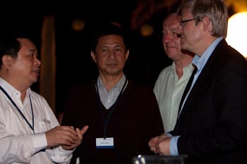 在8月末的達沃斯領袖論壇會議上,澳大利亞總理陸克文(右一)會見兗州煤業董事長王信(左一),高度評價兗礦的采煤技術和赴澳開發的澳思達煤礦,并表示對中國投資的歡迎。李俊