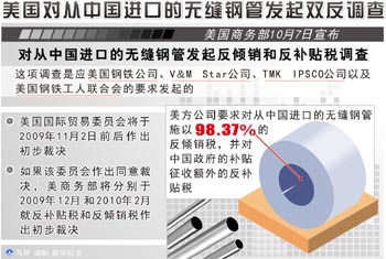 2009年4月,美國先針對我石油管發起反傾銷反補貼的“雙反”調查,10月7日,又宣布對包括管線管、標準管和壓力管在內的中國鋼管發起“雙反”調查,對我國鋼管整體出口造成了嚴重影響。 中國鋼結構協會鋼管分會提供的數據,2009年1-9月,我國出口美國無縫鋼管35.5萬噸,同比降低了約70%。其中石油管1-8月出口美國31萬噸,同比降低71%。預計2009年全年,我出口美國無縫鋼管約40萬噸,同比降低83%,其中石油管31.5萬噸左右,同比降低86%。目前,我國除普通機械管還有部分出口外,大多數無縫鋼管對美出口業務已陷入停滯。 近年來,我國無縫鋼管行業對出口的依賴度過高,2008年無縫鋼管出口占鋼管行業總出口的60%,金融危機爆發后國際原油價格不斷走低,國外市場需求低迷導致出口型企業業務出現整體大幅下滑。加之從去年開始至今,歐盟、加拿大、美國相繼對我國無縫鋼管提出“雙反”,使無縫鋼管行業更是雪上加霜,嚴重影響到企業的正常生產和經營。 據中國鋼結構協會鋼管分會統計,2008年我國共出口無縫鋼管609萬噸,2009年1-9月出口只有236.2萬噸,預計2009年全年出口無縫鋼管300萬噸左右,同比降低50%左右。 記者了解到,美國是近幾年來中國無縫鋼管出口最大的目的國。我國輸美無縫鋼管主要有石油管、管線管、標準管和壓力管四類產品,其中石油管的出口量和金額最大。據中國鋼結構協會鋼管分會統計,2008年,我國對美出口無縫鋼管229萬噸,占出口總量的37%。其中向美出口石油管222萬噸,占出口美國無縫鋼管總量的97%。