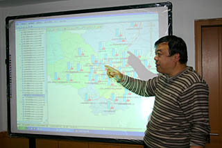 太原市環保局信息中心主任趙春峰正在分析太原市環保信息監測系統實時監測到的“二氧化硫排放占80%以上的企業”的污染排放動態。本報記者 南婷