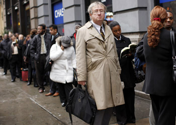 在美國紐約,52歲的埃里克·利佩斯在招聘會現場外排隊等候。新華社發