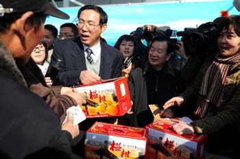 2009年1月14日,浙江衢州市委書記孫建國在杭州幫助橘農推銷柑橘。為了幫助衢州橘農順利度過“銷售寒冬”,浙江省農業廳和衢州市政府在杭州的浙江農展館廣場舉辦衢州柑橘杭州專場促銷會,衢州市委書記孫建國帶領百名橘農到現場叫賣柑橘。