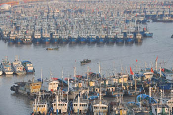 1月12日,舟山沈家門漁港停滿了回港避風的漁船。當日,舟山市氣象臺發布大風橙色預警信號,受冷空氣影響,舟山近外海漁場風力9- 10級,陣風11級,13日- 14日最低氣溫零下2到零下4攝氏度左右。