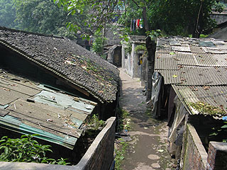 上圖為建成的居民小區一角。 下圖為從前的棚戶區一角。