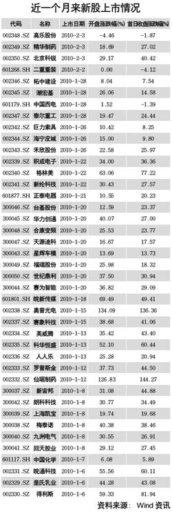 首日破發正在成為股市的一大看點。繼大盤股中國西電1月28日首日上市破發后,2月2日上市的大盤股二重重裝和2月3日上市的中小板股票高樂股份均未能躲過首日破發的命運。 2月3日是破發潮最為集中的一天。當天,中國建筑盤中最低跌至4.12元,比其4.18元的發行價跌去6分錢。而隨著滬深股市的大幅反彈,中國建筑最終收于4.22元,這只流通盤高達120億股的大盤股,已經在發行價附近苦苦掙扎了整整一周。 截至目前,中國中冶、中國化學、中國西電、中國建筑等一批質地優良的大盤股紛紛宣告“破發”。 隨著破發潮的蔓延,中小板也被卷入了新股上市首日破發潮。2月3日,北京科銳、精華制藥、高樂股份登陸中小板,其中發行市盈率高達70.90倍的高樂股份開盤即慘遭破發,成為2004年9月以來首只上市首日破發的中小板新股,也是2009年6月新股發行重啟以來,繼中國西電、二重重裝之后第三只上市首日破發的新股。 與此同時,高市盈率發行的創業板,也成了破發重災區。繼星輝車模、臺基股份、天源迪科破發之后,2月3日又有5只創業板公司破發,分別為福瑞股份、華力創通、回天膠業、梅泰諾、朗科科技,這樣創業板破發隊伍擴大到了8只。 新股破發現象的頻頻出現,使得曾經只賺不賠的打新也成了危險游戲。相關統計顯示,按照新股的中簽率,以上市首日中間價賣出,計算申購資金打新收益率,發現今年已經上市的41只新股中,申購資金收益率在0.1%以下的有9只股票,均為1月25日后上市的新股。 其中,申購資金收益率為負的有兩只,分別是二重重裝的-0.01%和高樂股份的-0.02%。另外,中國西電、精華制藥、潮宏基、泰爾重工、柘中建設、海寧皮城、巨力索具的上市當天申購資金收益率也在0.1%之下。 國泰君安首席經濟學家李迅雷表示,屢屢破發的直接原因是新股發行市盈率過高,這是由于目前新股發行體制尚不完善造成的。而在目前節點上出現破發潮,則是市場供需失衡的結果。去年下半年以來,股票供給急劇增加,使得市場相對資金面偏緊,破發不期而至。