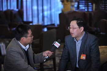 全國人大代表、南寧市市長黃方方接受記者采訪。 |