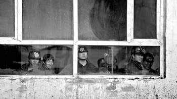 幾名礦工在救援現場等待參加救援。資料照片 |