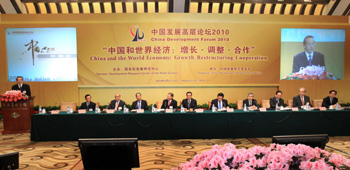 3月21日,由國務院發展研究中心主辦的中國發展高層論壇2010年會開幕式在北京舉行。本屆年會主題為“中國和世界經濟:增長·調整·合作”。新華社記者