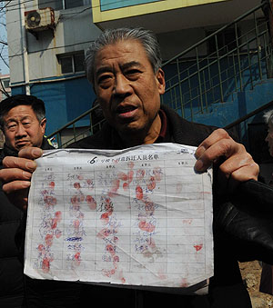 享園小區居民向記者展示“不同意拆遷人員名單”新華社記者 王民