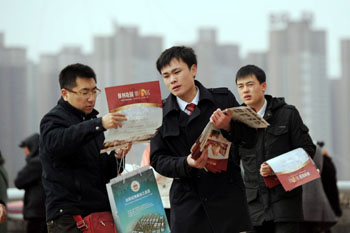 3月24日,在沈陽春季房交會上,售樓員向市民介紹樓盤信息。70多家房地產開發企業的102個樓盤參展,可銷售商品住宅25600套,而參展中介機構提供二手房源達6萬套。新華社發(楊新躍/攝) |