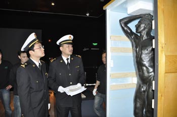 與“金色少女”一樣,許多國家的國寶級文物都遠渡重洋,聚集上海世博會。其中法國奧賽博物館價值超過4億歐元的七件傳世珍品,一亮相就成了世博會的最大熱門,每天慕名來參觀的游客在烈日下排成長龍,蜿蜒不絕。七件展品包括米勒的《晚鐘》、馬勒的《陽臺》、梵高的《阿爾的舞廳》、塞尚的《咖啡壺邊的婦女》、博納爾的《化妝間》、高更的《餐點》以及羅丹的雕塑作品《青銅時代》,都是稀世的藝術珍品。 “太難得了,(這個是)必須的,排再長的隊也要看!”來自東北的李先生帶著一家人排在長長的隊伍中,一邊擦汗一邊樂呵呵地說。 因為要開箱驗放,上海海關關員湯新成為世博會第一時間看到七件法國“寶貝”的“幸運兒”之一!澳苓@么近距離接觸到價值連城的藝術珍品,真的很幸運,也很自豪。當然,心里也有一點緊張,畢竟,這些展品價值超過前期園區所有展品的價值總和!睖抡f。為保護這些稀世珍品,海關驗放工作不再單獨進行,而是穿插在整個布展過程中,“整個開箱過程都是由專業物流人員在文物專家的指導下進行,對溫度、濕度要求很高。專家們對展臺進行反復測量,對掛畫的順序也非常講究,”因此,這次驗放格外漫長,差不多從上午10點到下午五點左右才結束!耙粋上午才放好一個雕塑”。下午三點多,工作人員打開第一個存放畫作的木箱,小心翼翼地撥開五層保護墊,梵高的名作《阿爾的舞廳》露出全貌,驚艷全場。 “現場非常安靜,博物館的專家透過放大鏡,對畫作與樣本圖片進行比對,檢查畫作狀態,并確認真偽!北M管帶著手套,湯新并沒有像過去驗放貨物那樣親手接觸到展品!半m然不是零距離,但能這么近距離經歷整個過程,實在太難忘了!